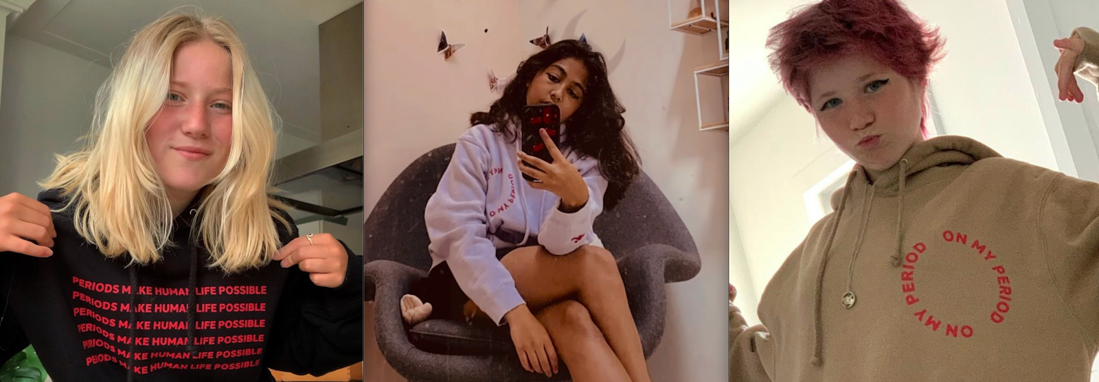 "It’s way to hot to wear a hoodie right now… But these came ALL THE WAY FROM @itsaugust AND ALL THE WAY FROM TEXAS✨✨ Waited three months for them, but it was all worth it!!!! Love my period people ♥️♥️ Especially Anaya Balaju who was so sweet to send them all the way to Amsterdam"- Lot Van Oekel